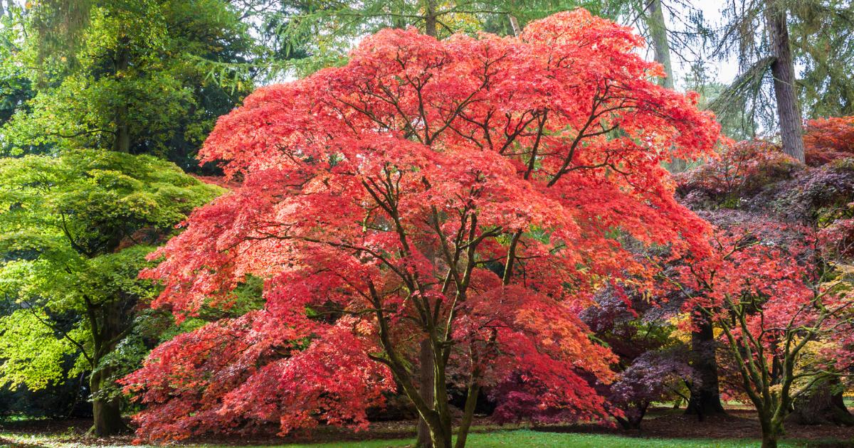 In the cooler months, Japanese maple trees, considered a staple in UK gardens, show off their red leaves.