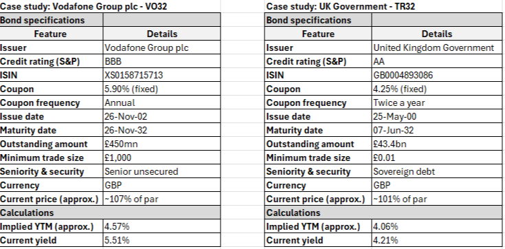 Below, we work through the key considerations for investors, step-by-step, using the Vodafone 5.9% 26/11/32 bond (VO32) – one of the very few legacy bonds from 2002 that had accessibility built in.
